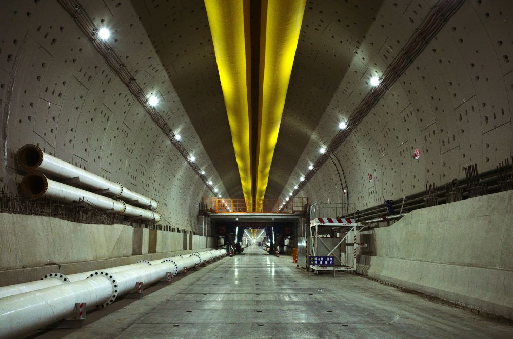 走进这个黄河之下的“地底世界”,冷白色灯光如星辉般洒在隧道管片上,浓浓“水泥风”扑面而来。