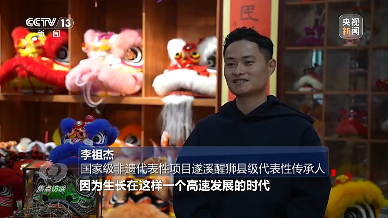 李祖杰:其实和父亲相比的话,我觉得我是非常幸运的,因为生长在这样一个高速发展的时代,有很多科技帮助我做得更长远,我要把这份传统文化传承下去,而且是结合着时代发展去传承,让年轻一代也了解和喜欢醒狮文化。