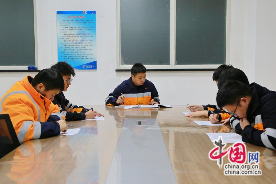 李响组织当班职工召开班前会,布置工作任务,提示安全风险。中国网发 刘诗林/摄