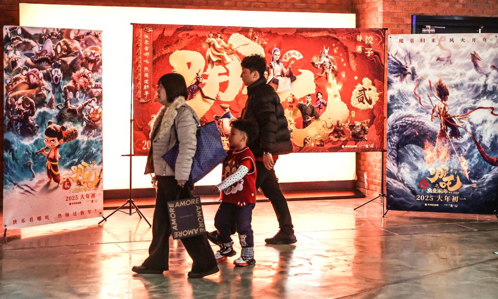 这是2月6日在辽宁沈阳一家影院拍摄的《哪吒之魔童闹海》海报。新华社记者 李钢 摄