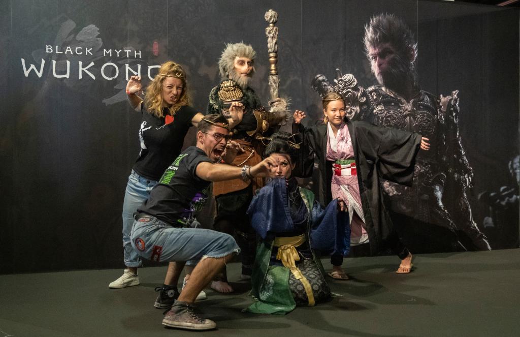 2024年8月22日,人们在德国2024年科隆国际游戏展《黑神话:悟空》拍照区拍照。新华社记者 张帆 摄