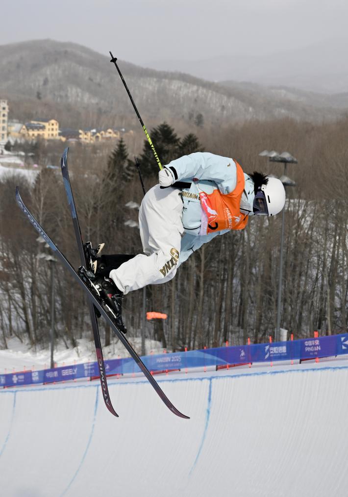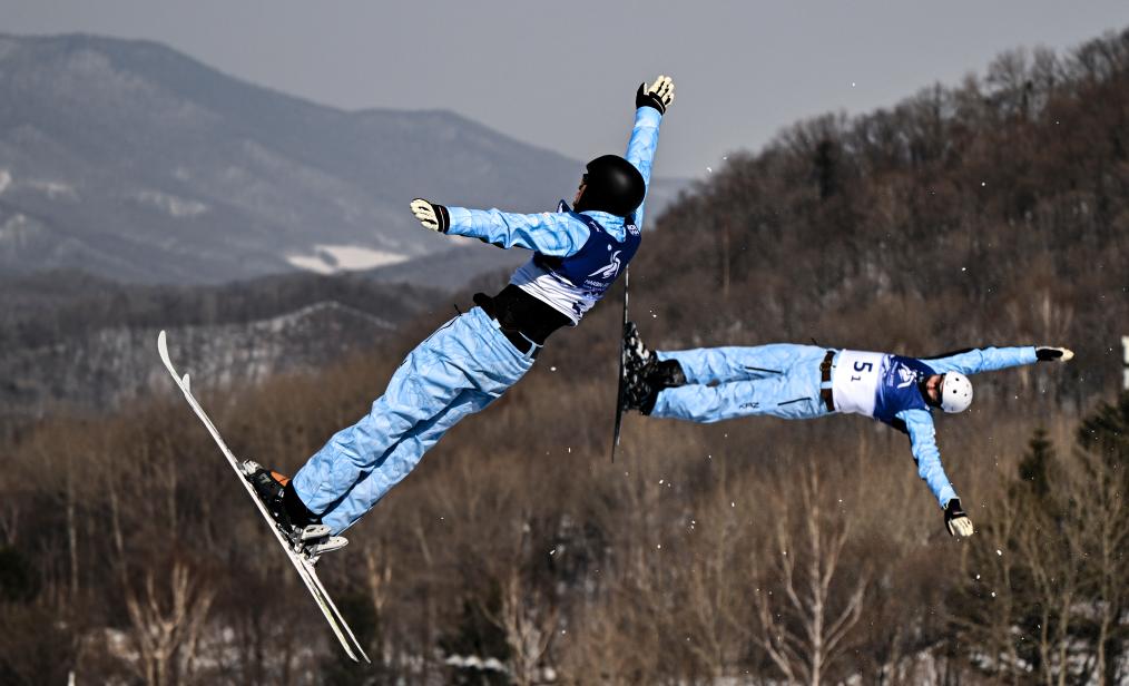 自由式滑雪空中技巧双人同步是本届亚冬会的新增项目。11日的决赛中,女子方面冯俊熙/王雪为中国队稳稳添上一金;男子项目争夺直到最后一跳才尘埃落定:哈萨克斯坦组合罗曼·伊万诺夫/谢尔佐德·卡希尔巴耶夫在第一跳过后大比分落后,但在第二跳以近乎完美的表现拿到97.92分,力压两对中国队组合取胜,为哈萨克斯坦队拿下雪上项目首金。