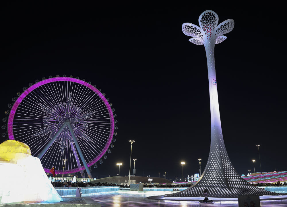 ↑闭幕式分会场拍摄的雪雕。