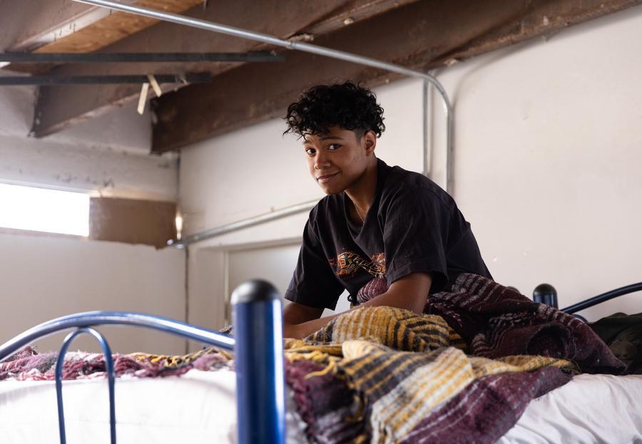 2025年2月2日,在墨西哥奇瓦瓦州华雷斯城的一处移民收容所,一名少年在休息。新华社记者李梦馨摄