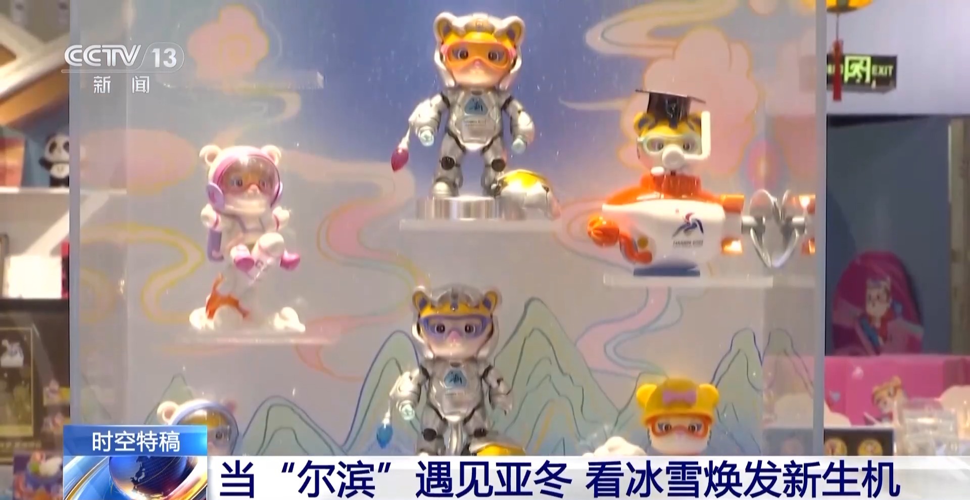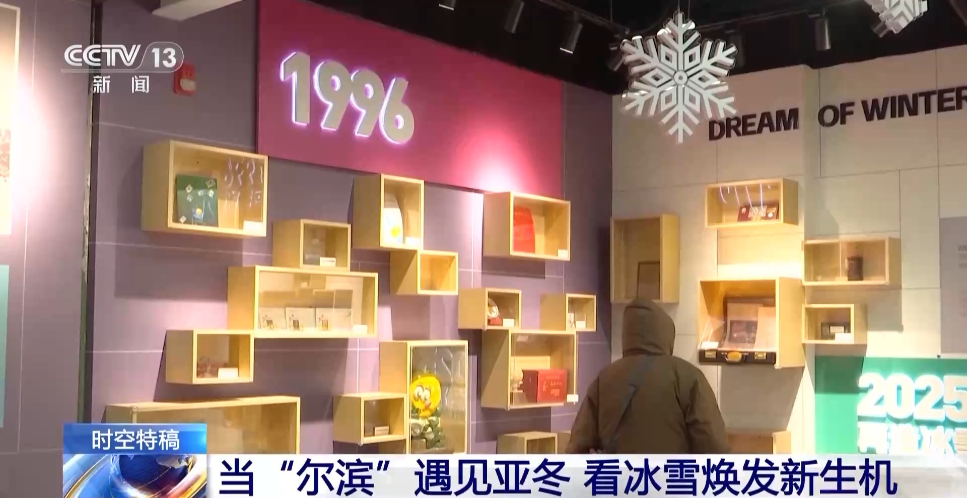 总台央视记者 郑怡哲:看完了亚布力的绝美雪景和热闹非凡的雪场,让我们回到哈尔滨的市区来看一看。那要说什么地方最能体现黑龙江哈尔滨两届亚冬会城市这一端的变化,那一定是这个双亚冬的纪念馆,其实我觉得从纪念品上就能看出这个城市的特点和发展脉络。