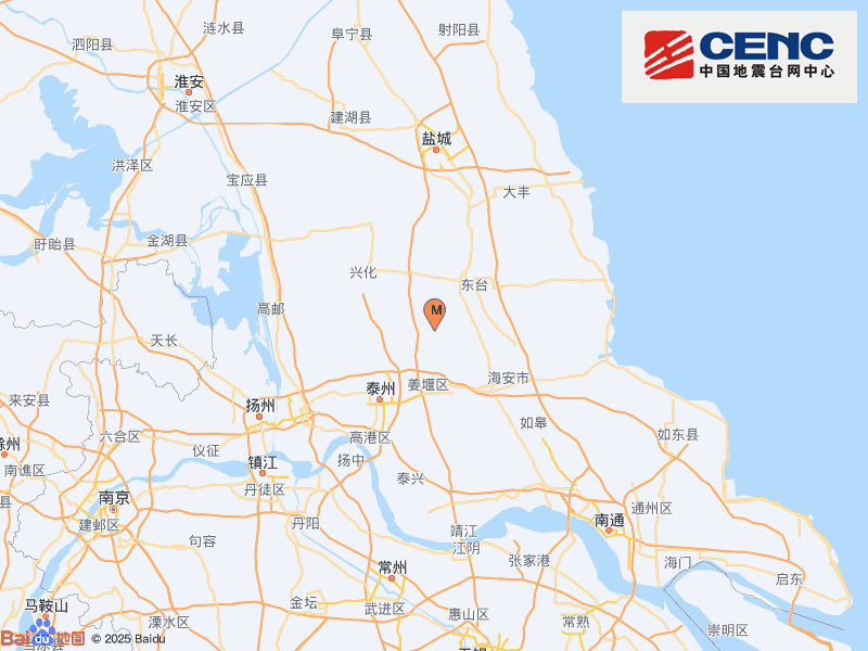 中国网2月21日讯 据中国地震台网微博消息,中国地震台网正式测定:2月21日7时16分在江苏泰州市兴化市(北纬32.73度,东经120.16度)发生3.7级地震,震源深度9千米。