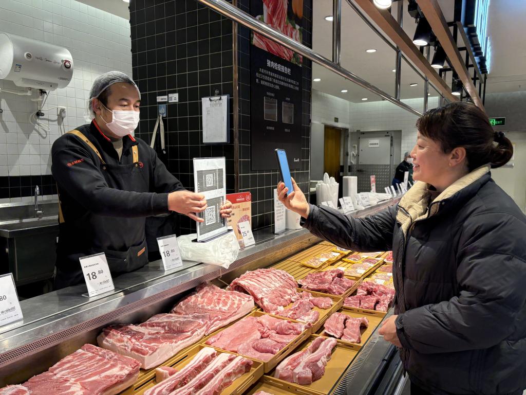 近日,记者走进贵阳市一家猪肉生鲜门店进行了产品“溯源码扫码”体验。该门店负责人告诉记者,店里每天进货的猪肉产品都会有一个畜禽屠宰溯源码,相当于每头生猪上面的“电子身份证”,方便消费者查看有关猪肉产品信息。