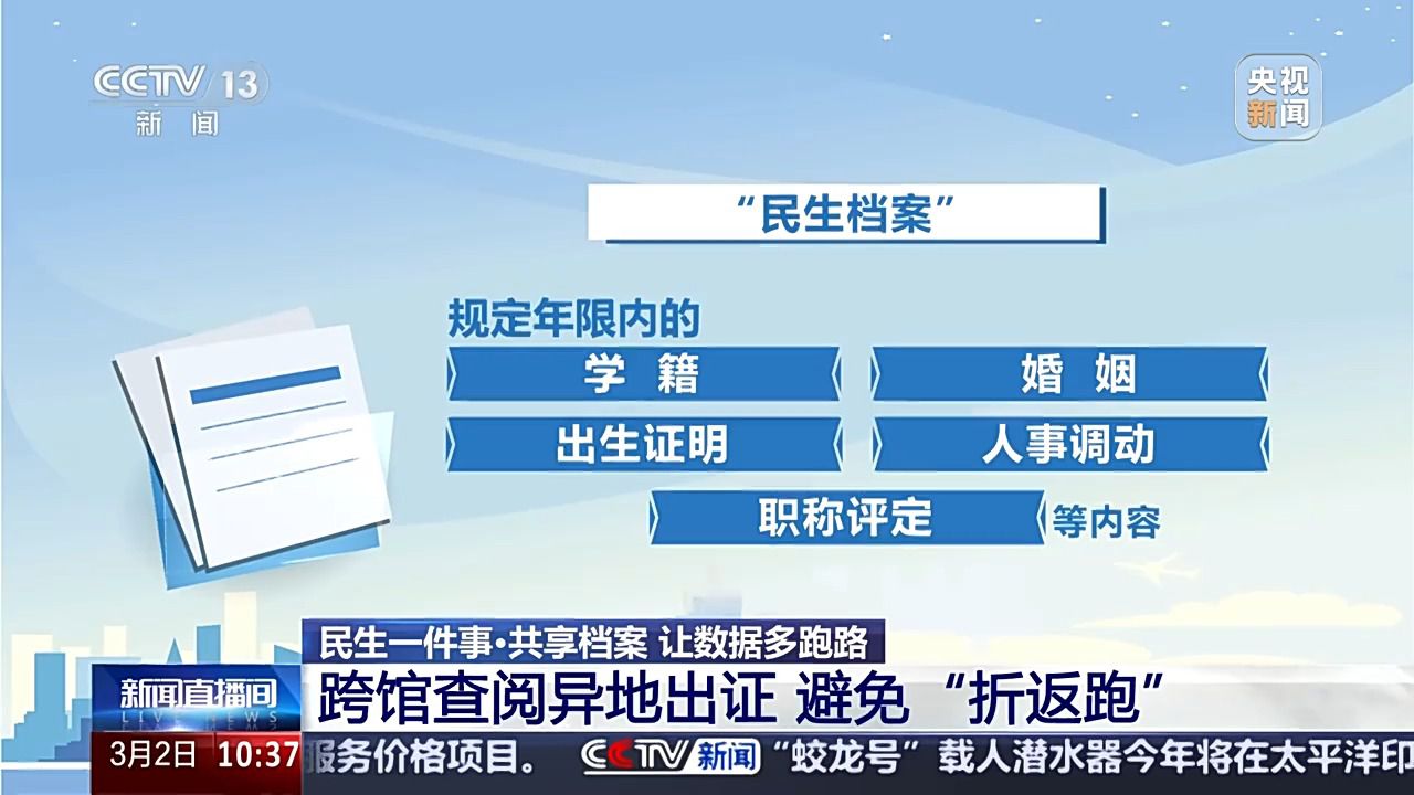 “民生档案”主要涉及规定年限内的学籍、婚姻、出生证明、人事调动、职称评定等内容。协议约定,三地档案部门建立民生档案跨区域共享利用工作协调联动机制,建设统一的网络服务平台,制定互通互认的数据标准,实现“跨馆查阅、异地出证”。换句话说,就是让数据多跑路,群众少跑腿,该平台预计今年内上线试运行。