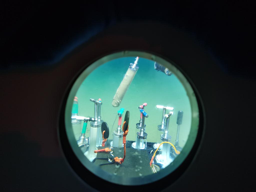 科研人员通过载人潜水器对深海沉积物进行取样。(受访单位供图)