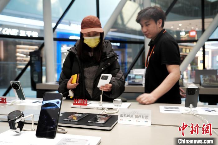 3月5日,消费者在北京一门店选购手机产品。中新社记者 张祥毅 摄