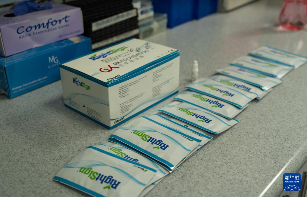 这是3月24日在洪都拉斯首都特古西加尔巴的埃斯库埃拉医院拍摄的快速检测包。新华社记者 李梦馨 摄