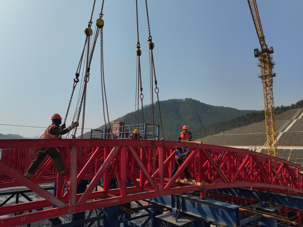 这是广西平陆运河专用动物通道桥施工现场(3月20日摄,无人机照片)。新华社记者 周华 摄