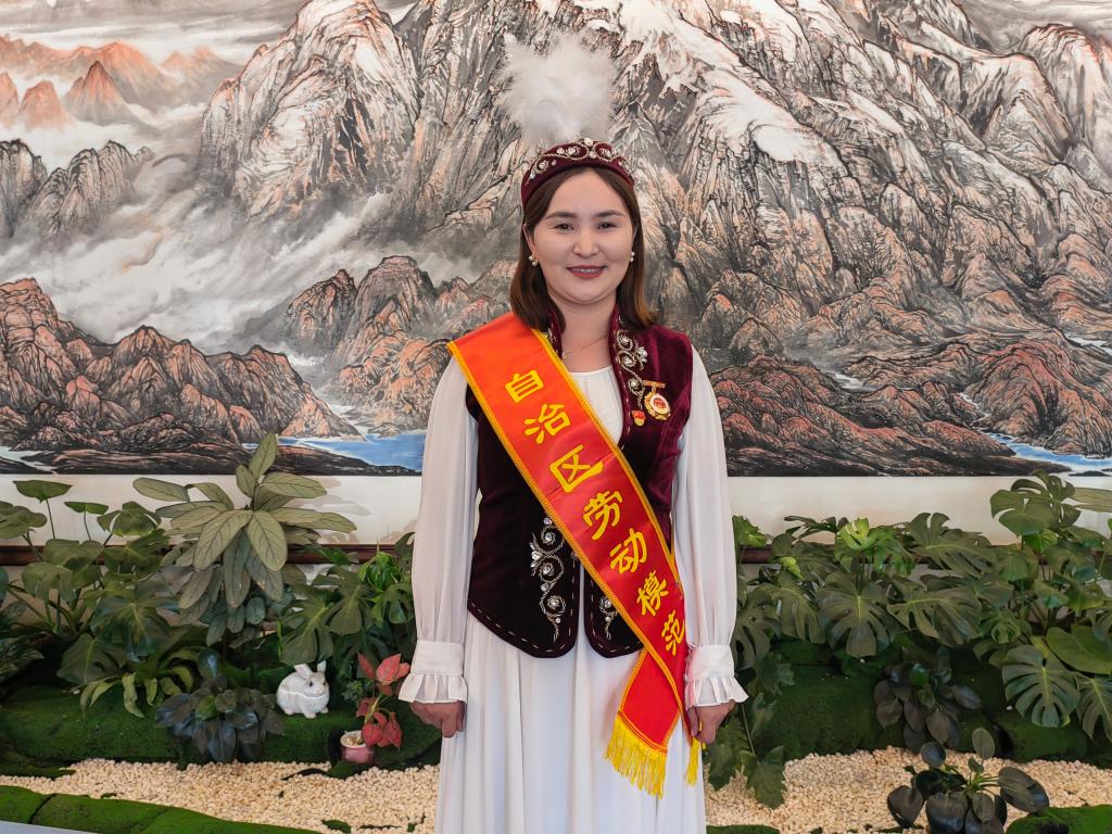 哈丽帕获得2025年自治区劳动模范时留念拍照。(受访者供图)