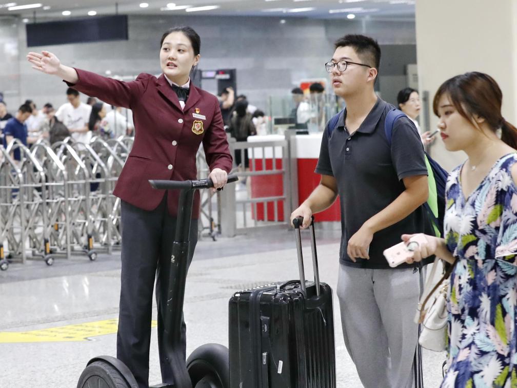 高煜在采访中表示,有了平衡车,服务响应速度提升了一倍。如今这项特色服务品牌被命名为“小煜流星轮”,已经推广到国家会展中心站等多个大型换乘枢纽车站。