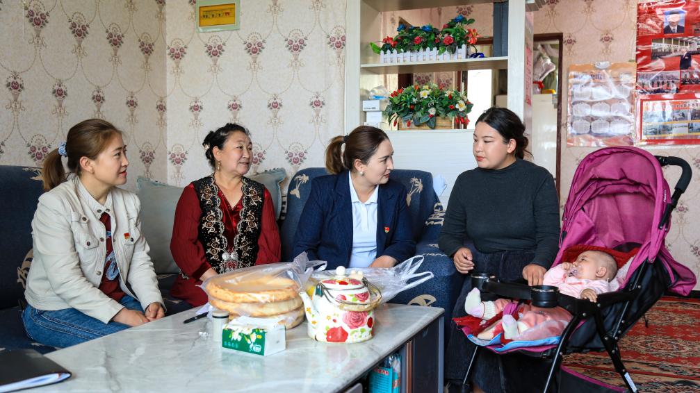 哈丽帕走访入户。新华社发(麦合木提·阿卜拉 摄)
