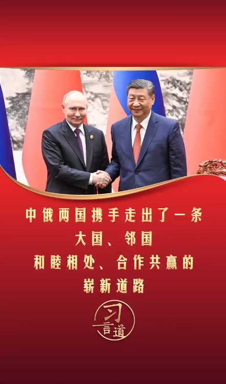 习近平:中俄两国携手走出了一条大国、邻国和睦相处、合作共赢的崭新道路。