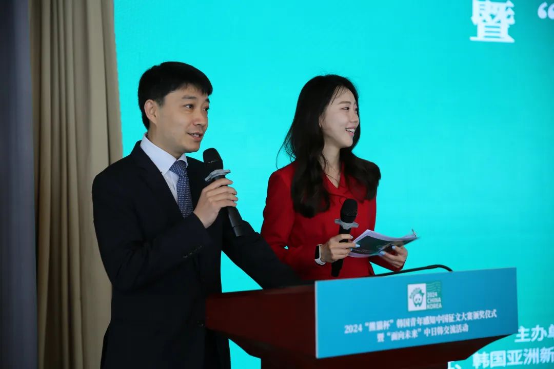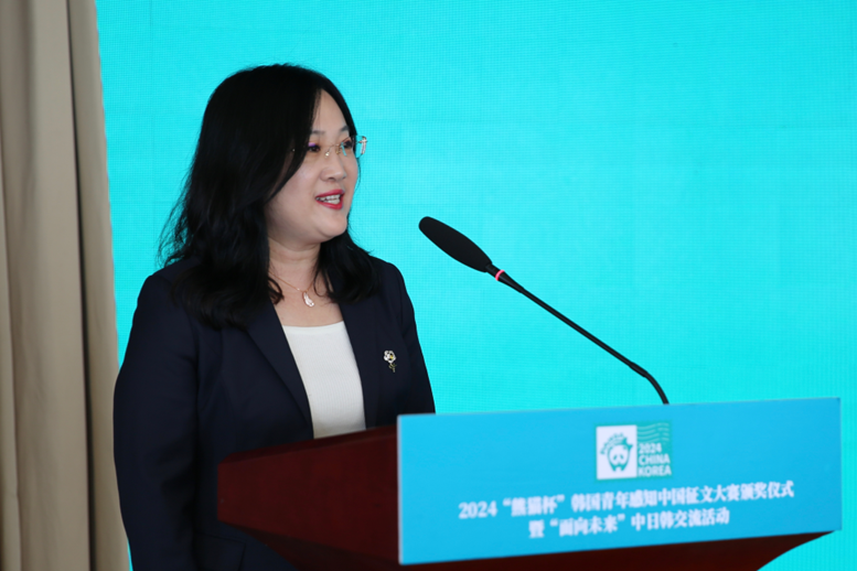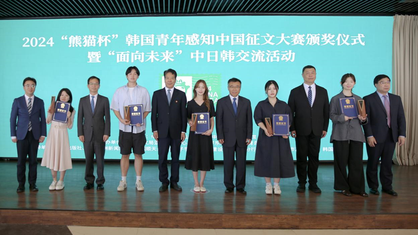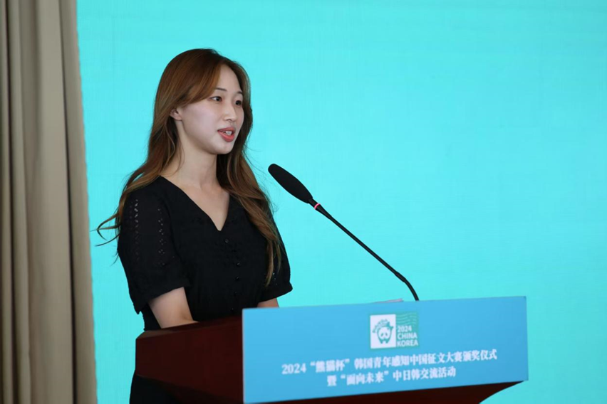 △颁奖嘉宾为2024“熊猫杯”韩国青年感知中国征文大赛特等奖获奖青年颁奖。