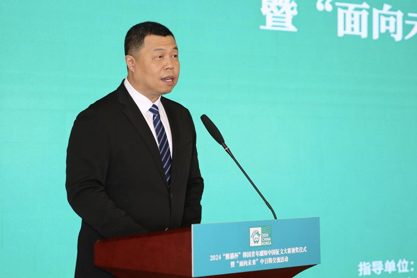 韩国亚洲经济新闻集团旗下《亚洲日报》社长梁圭铉通过视频致辞表示,“熊猫杯”不仅是征文比赛,更是韩中日年轻一代增进理解、学习互鉴的平台,是探索建立东北亚命运共同体的基石。这里的声音与故事,必将成为创造中日韩美好未来的力量。