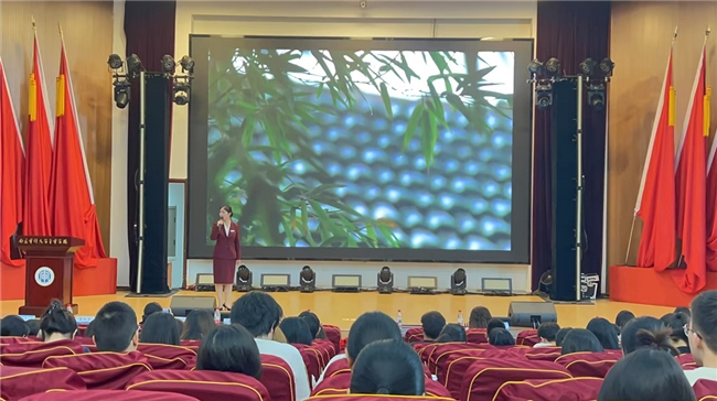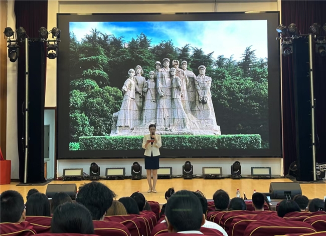 宣讲活动在沉浸式短片中拉开帷幕。宣讲团成员以 "信仰的力量" 为主题,深情讲述五位英烈的感人事迹:南泥湾拓荒者刘亚生烈士在狱中坚守信仰的钢铁意志;“黎明前的血衣”背后革命伉俪的生死绝恋;艺术家赵良璋烈士“左手持枪、右手执笔”的革命浪漫主义;白丁香烈士为保护战友慷慨赴义的巾帼豪情;孙小梅烈士投身解放事业的青春壮歌。宣讲者以多个人称视角叙事,配合历史图片与场景还原,带领师生重返烽火连天的革命岁月。