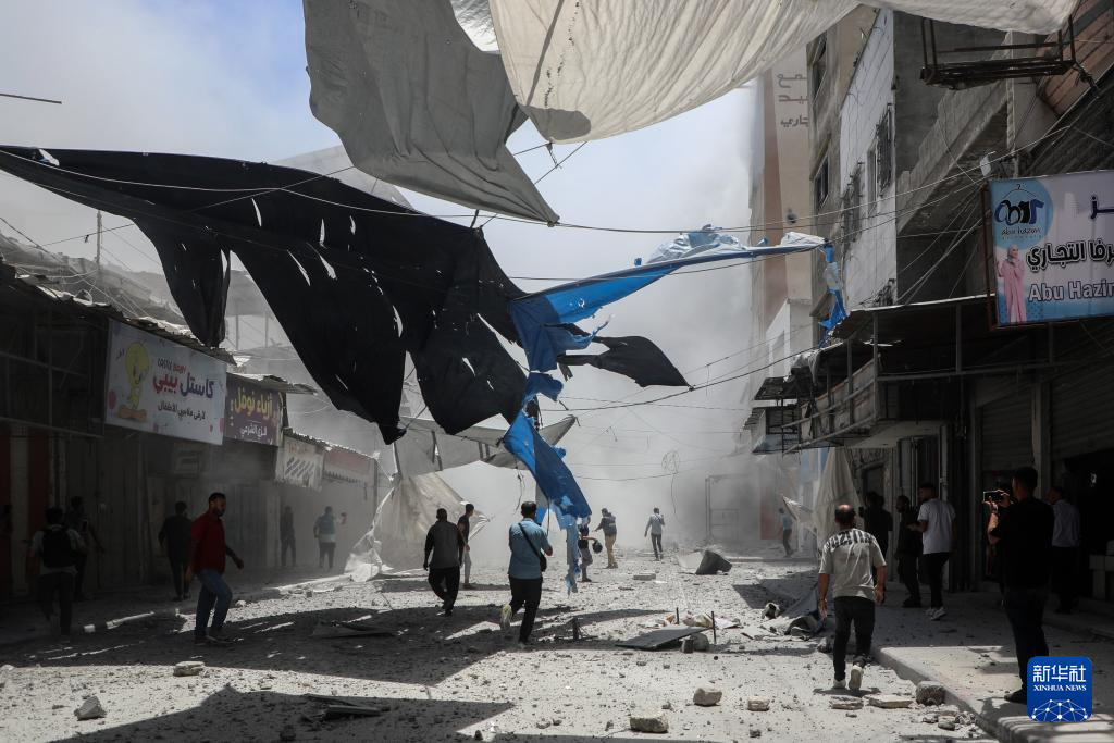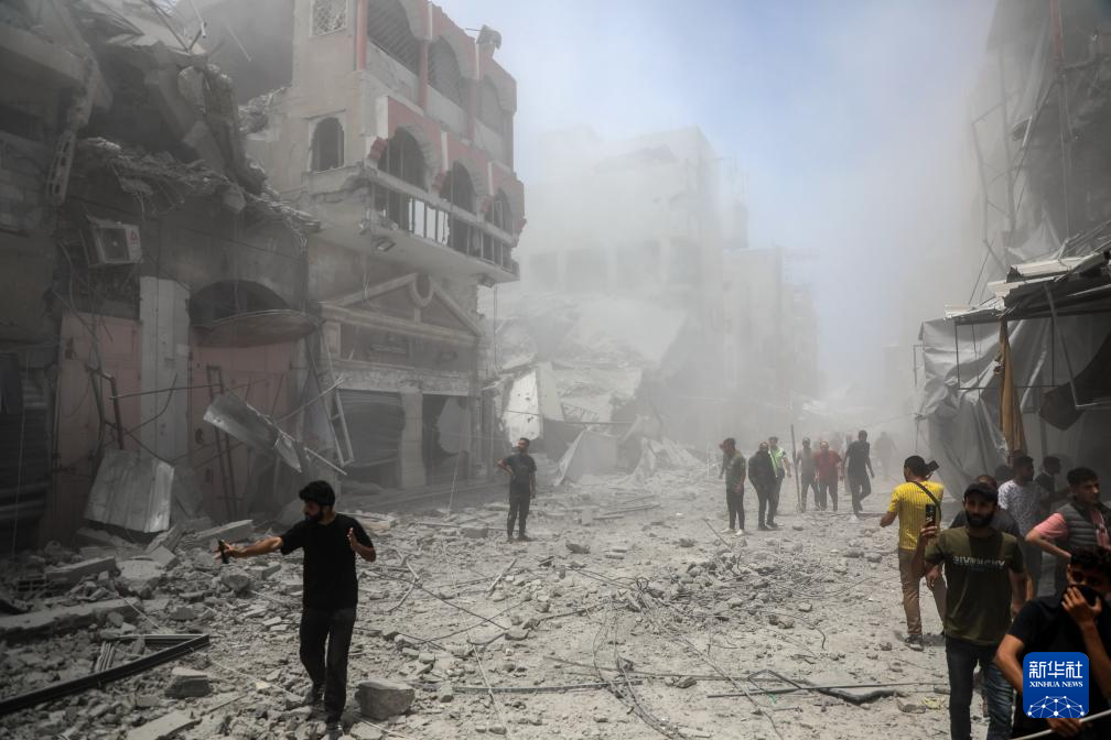 5月31日,人们在加沙城查看遭以军袭击后的废墟。新华社发(里泽克·阿卜杜勒贾瓦德摄)