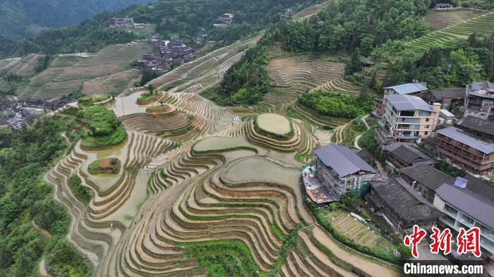 5月2日,在广西桂林市龙胜各族自治县龙脊古壮寨,村民在梯田上开展农耕劳作。潘志祥 摄