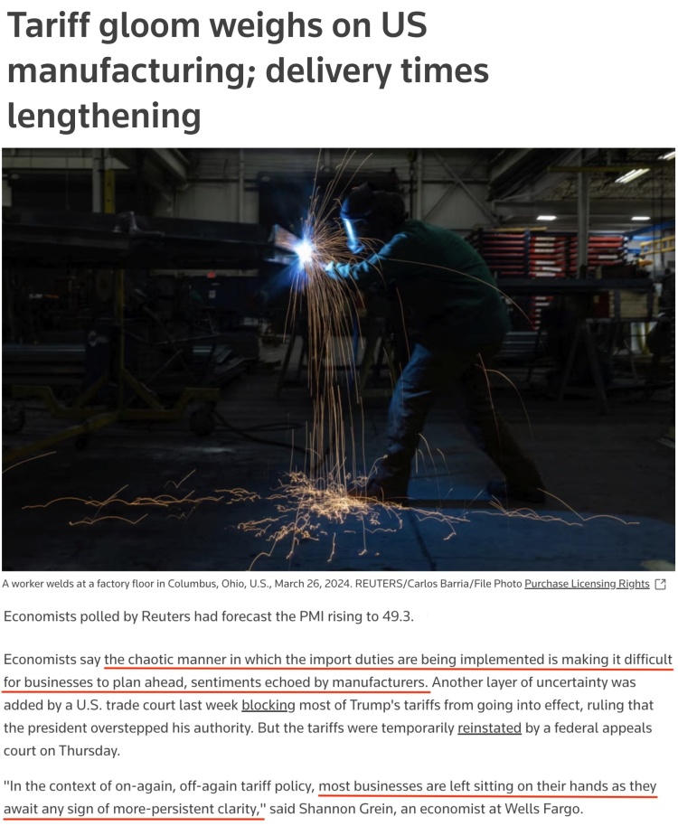 与此同时,关税乱拳持续反噬着美国经济。