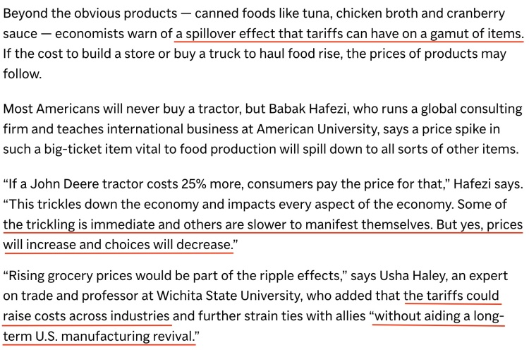 除了罐装食品等显而易见的产品外,经济学家还警告称,钢铝关税上调对一系列产品可能产生的溢出效应也将最终影响到食品价格。