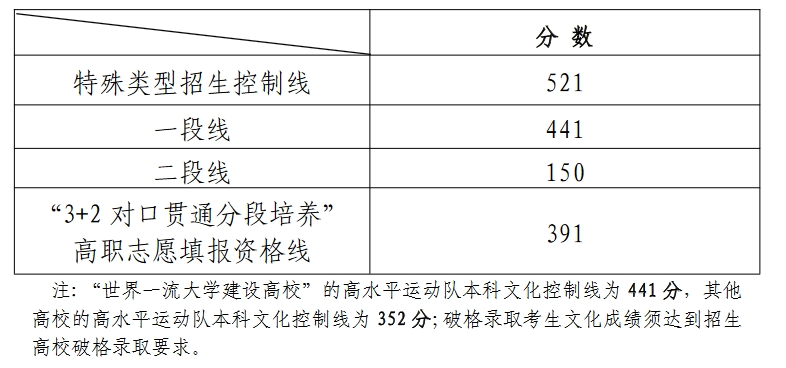 特殊类型招生录取控制分数线为历史类503分、物理类476分。