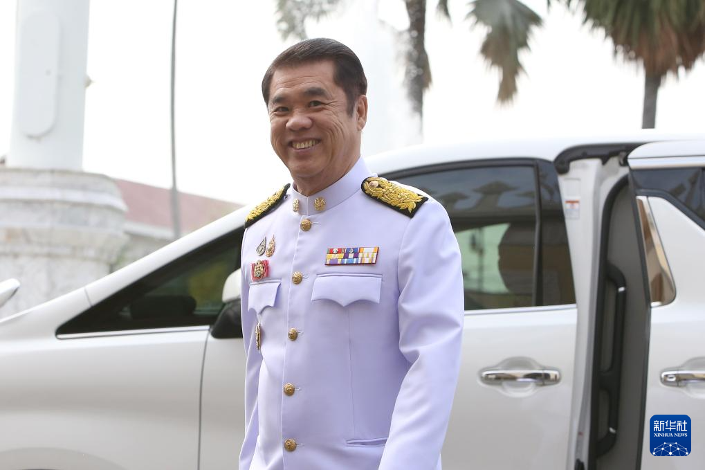 7月3日,在泰国曼谷,代理行使总理职权的泰国副总理兼交通部长素里亚·庄龙琅集抵达总理府。新华社发(拉亨摄)