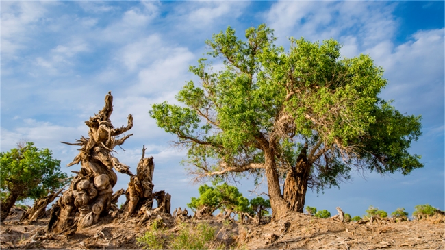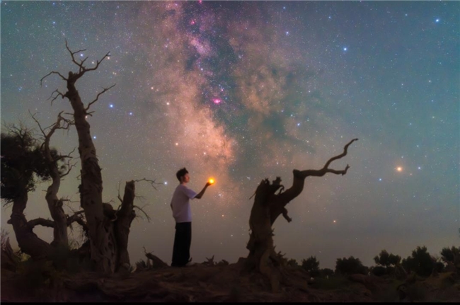 伊吾胡杨景区,苍劲胡杨与银河星空交相辉映