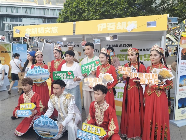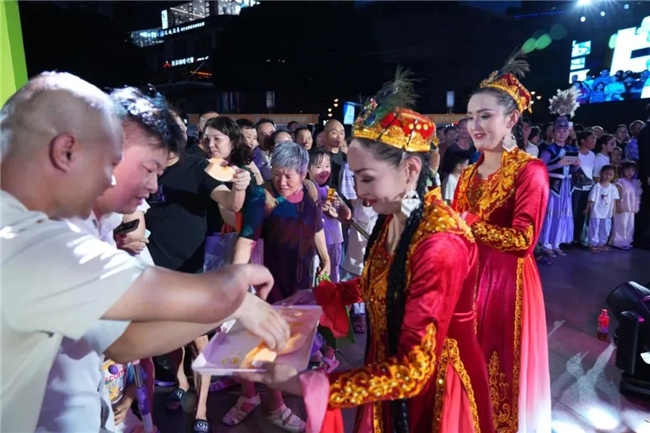 演员们现场请重庆市民品尝哈密瓜,沉浸式感受“甜蜜哈密”(李华摄)