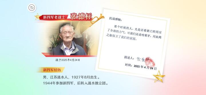 新四军经历:1938年,她加入新四军教导总队第八队(女子队)。在抗日报国的“经济战线”上,为守护党的“钱袋子”,她将金条缝入特制的背心贴身携带,人不离金、金不离人,力保金库分毫不损。