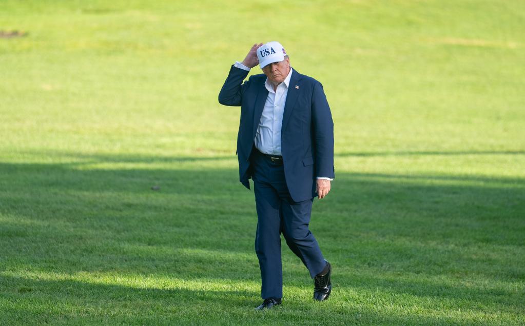 7月6日,美国总统特朗普乘直升机返回华盛顿白宫。新华社记者胡友松摄