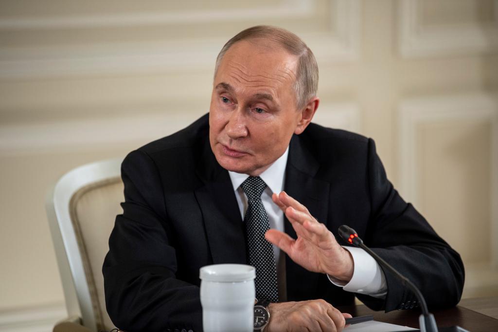 6月18日,俄罗斯总统普京会见出席圣彼得堡国际经济论坛的世界主要通讯社负责人。新华社记者 曹阳 摄