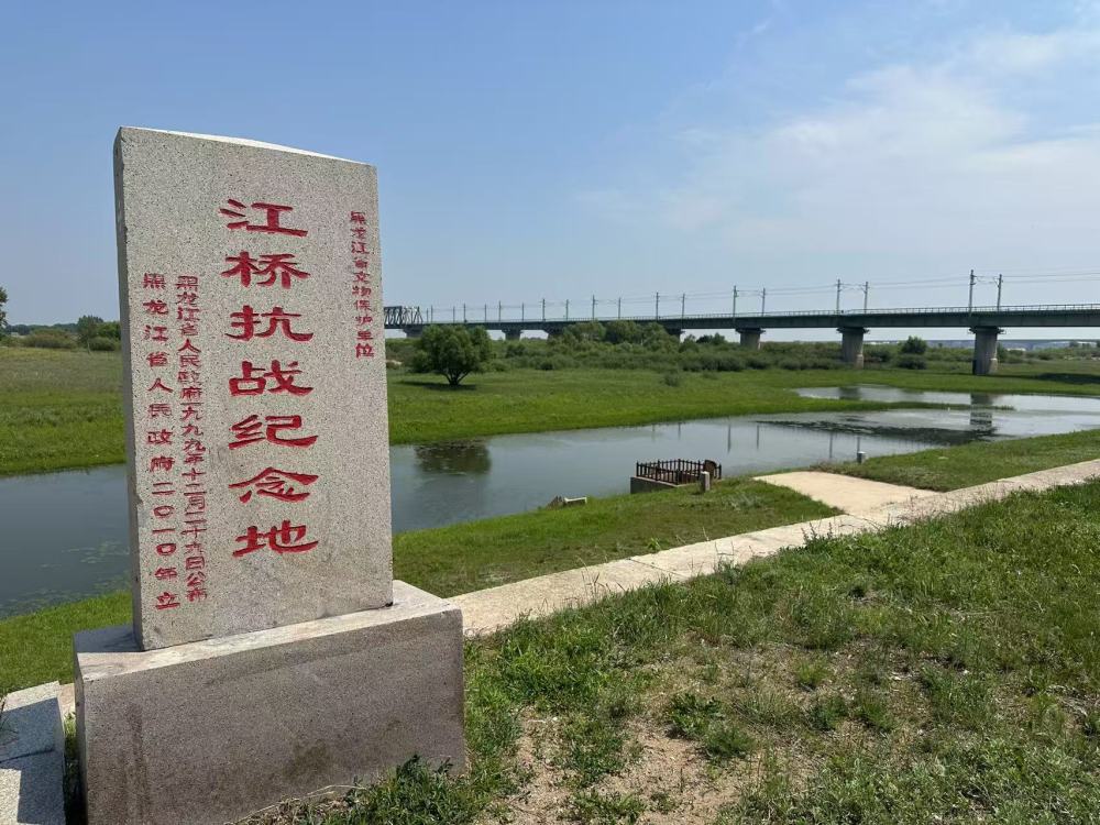 嫩水江畔,斑驳的石碑肃立,湍急的江水冲刷着堤岸,老江桥仅存的桥墩遗址已淹没在水下,无声诉说着九十多年前的硝烟与过往。