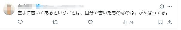 另一方面,还有日本民众表示支持,称“文字出现在左手,说明是自己写上去的,加油。”