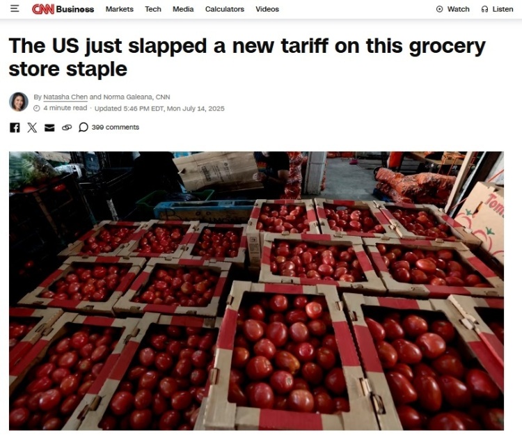 在新的关税下,不少媒体开始猜测番茄会不会成为美国的“下一个鸡蛋”。