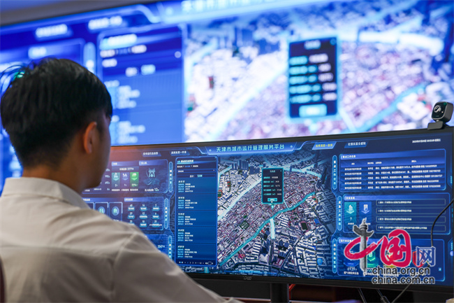 2025年7月9日,在天津市城市管理委员会,工作人员通过天津市城市运行管理服务平台进行实时监测。近年来,天津市推进城市运行管理“一网统管”,提升城市治理的精细化与智能化水平。新华社记者 孙凡越 摄/新华社图片库