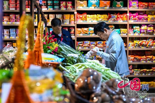 2024年9月4日,居民在乌海市海南区新苑社区内的一家超市购物。近年来,内蒙古自治区乌海市积极推进一刻钟便民生活圈建设,为社区居民提供医药、养老、文化等方面的服务。新华社记者 李志鹏 摄/新华社图片库
