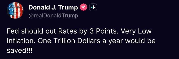 他15日在社交媒体上发帖称,由于“通胀率较低”,美联储应该降息3个百分点,这样“一年可以省下一万亿美元”。