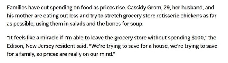 实际上,随着物价上涨,普通美国家庭已纷纷削减了食品开支。