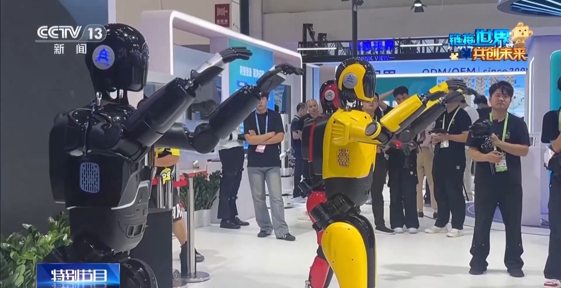 记者来到链博会数字科技链的展区,看到了一款轮足机器人,它不仅可以扭动身体,还能蹦蹦跳跳。在机器人旁边的灵巧手传感器,碰触感应键,电脑屏幕就能显示出手指触摸的力道、位置等信息。