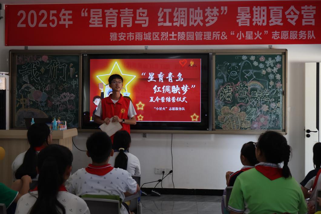 近日,一场沉浸式的红色体验之旅在千年雅州悄然展开。7月22日下午,由雨城区退役军人事务局、四川农业大学“小星火”志愿服务队联合举办的“星育青鸟·红绸映梦”红色主题公益夏令营在雅安烈士陵园圆满结营。30名来自本地的青少年学员在为期15天的成长营中,通过丰富多样的实践课程、鲜活生动的红色文化体验,在心中播下了“传承红色基因、争做时代新人”的种子。