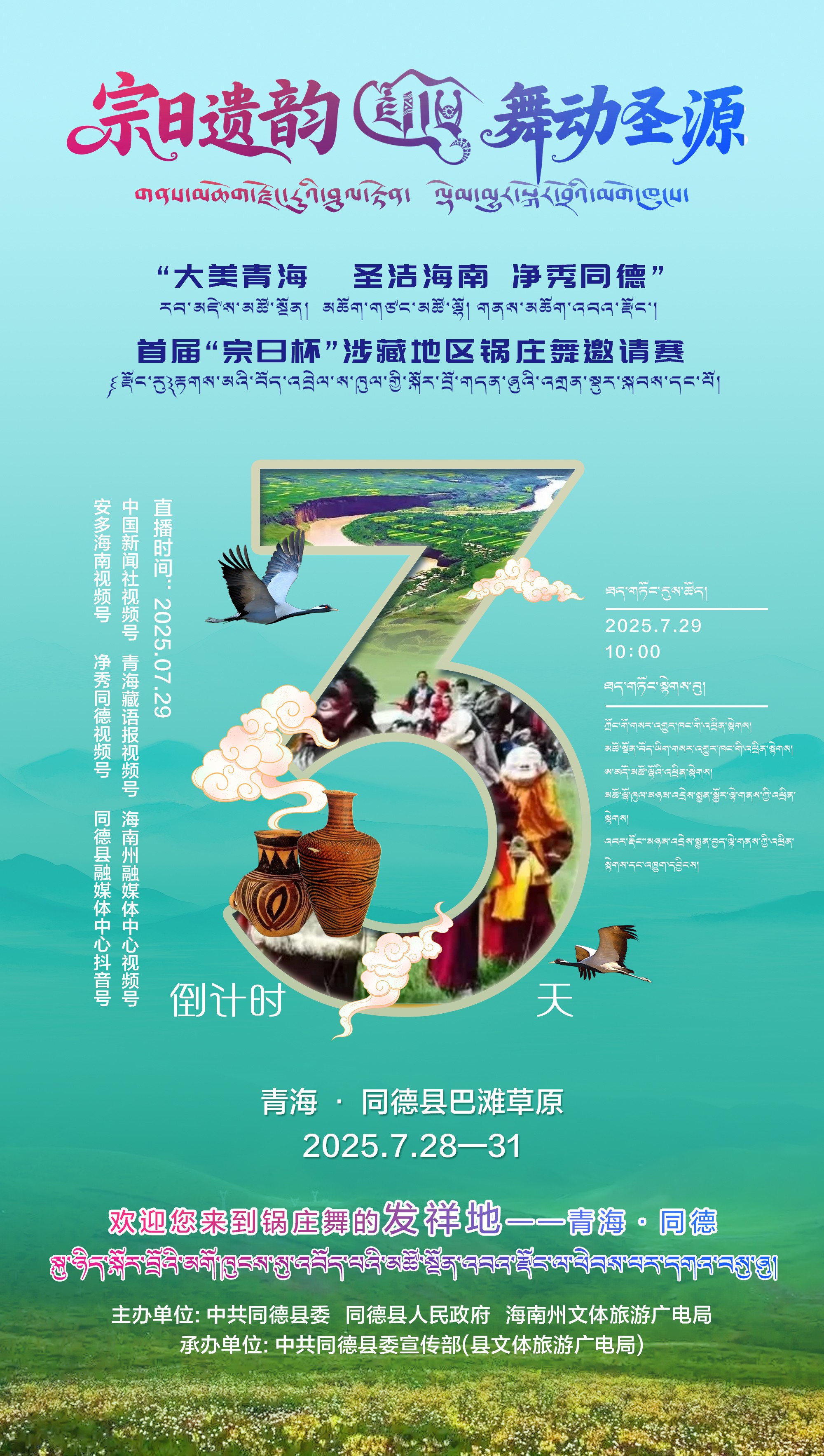 青海,不仅有壮丽的自然风光,更孕育了多姿多彩的民族文化。为进一步传承和弘扬优秀民族文化,推动文化与旅游深度融合,由中共同德县委、同德县人民政府、海南州文体旅游广电局联合策划主办,中共同德县委宣传部(文体旅游广电局)承办的“宗日遗韵,舞动圣源”同德县第十九届宗日文化旅游民族传统运动会暨首届“宗日杯”涉藏地区锅庄舞邀请赛将于2025年7月28日至31日在同德县巴滩草原举办。