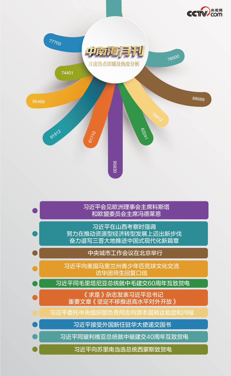 央视网《中南海月刊》运用智能大数据,与您一同回顾总书记的七月。