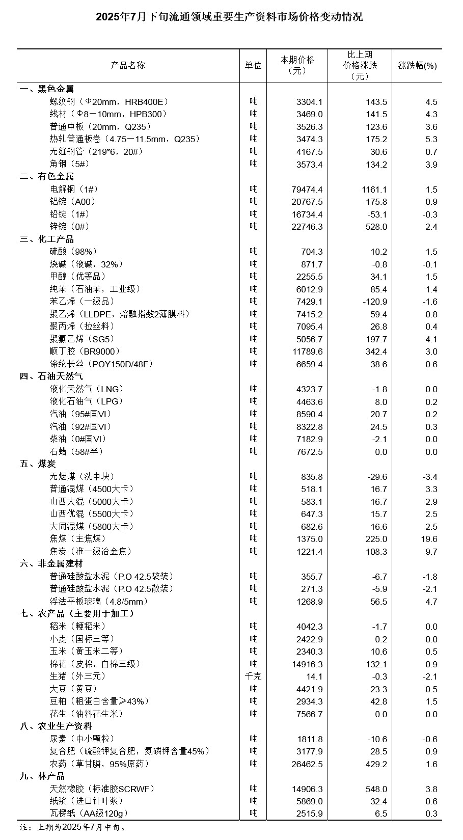 中国网8月4日讯 据国家统计局网站消息,据对全国流通领域9大类50种重要生产资料市场价格的监测显示,2025年7月下旬与7月中旬相比,36种产品价格上涨,8种下降,6种持平。