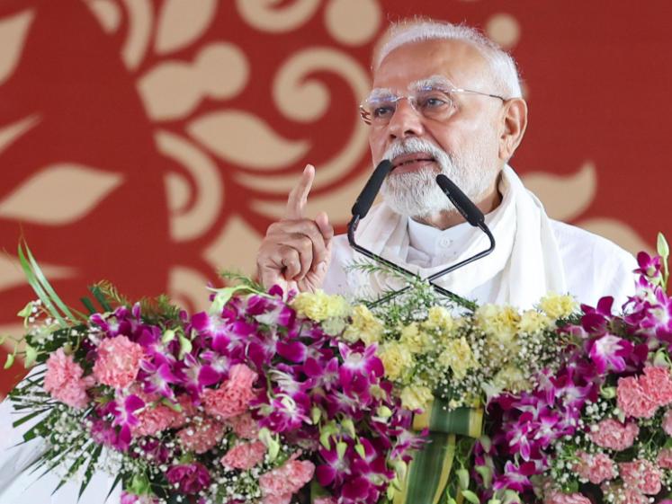 印度总理莫迪8月2日在印度北方邦城市瓦拉纳西的一个集会上发表讲话。(图片来自莫迪办公室网站)