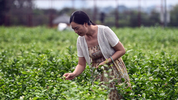 地处桂南的广西横州市,凭借富硒沃土与独特气候,拥有超过18万亩的茉莉花田,茉莉花(茶)产量占中国总产量80%以上,占世界60%以上,有“中国茉莉之乡”美誉。每年夏季是横州茉莉花采摘季,花田连片,芬芳漫溢,花农在花海中穿梭,一派繁忙景象。