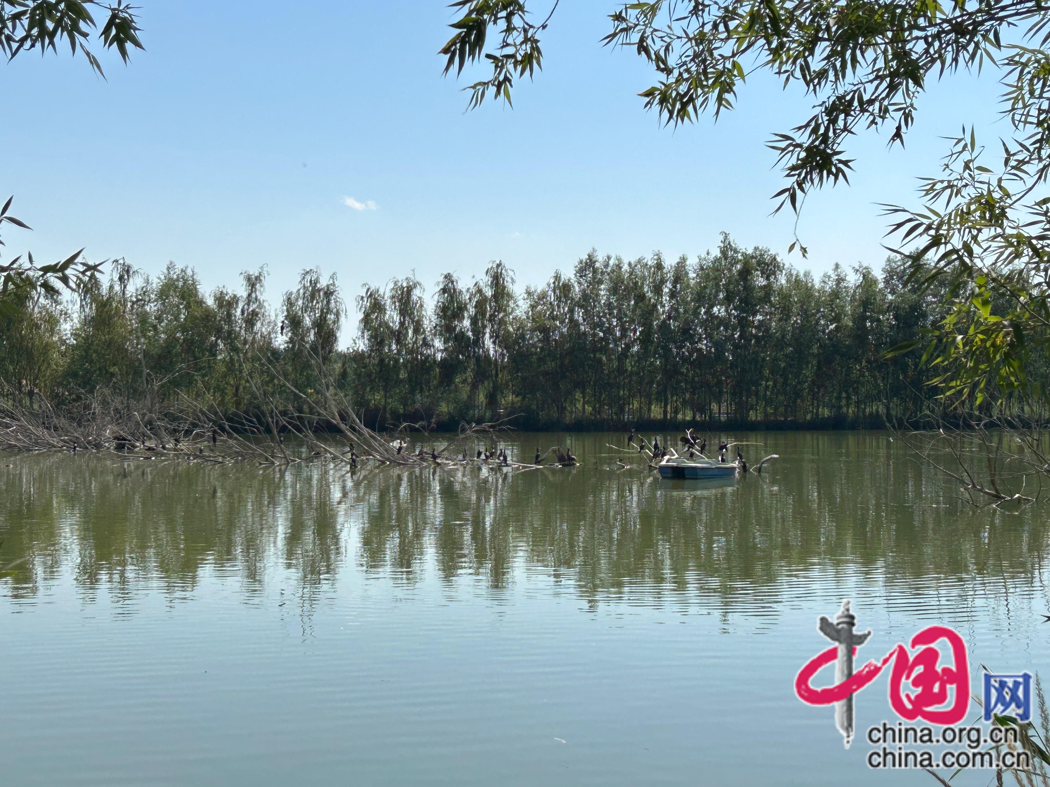 午后时分,阳光洒在湖面上泛起粼粼波光。记者看到,三五成群的白鹭正在浅滩处觅食,成群的野鸭在湖心游弋。沿着栈道前行,游客或驻足拍照,或骑车漫游。然而,在十年前,这里还是坑洼地和荒草滩,周边散落着破旧的土建筑。