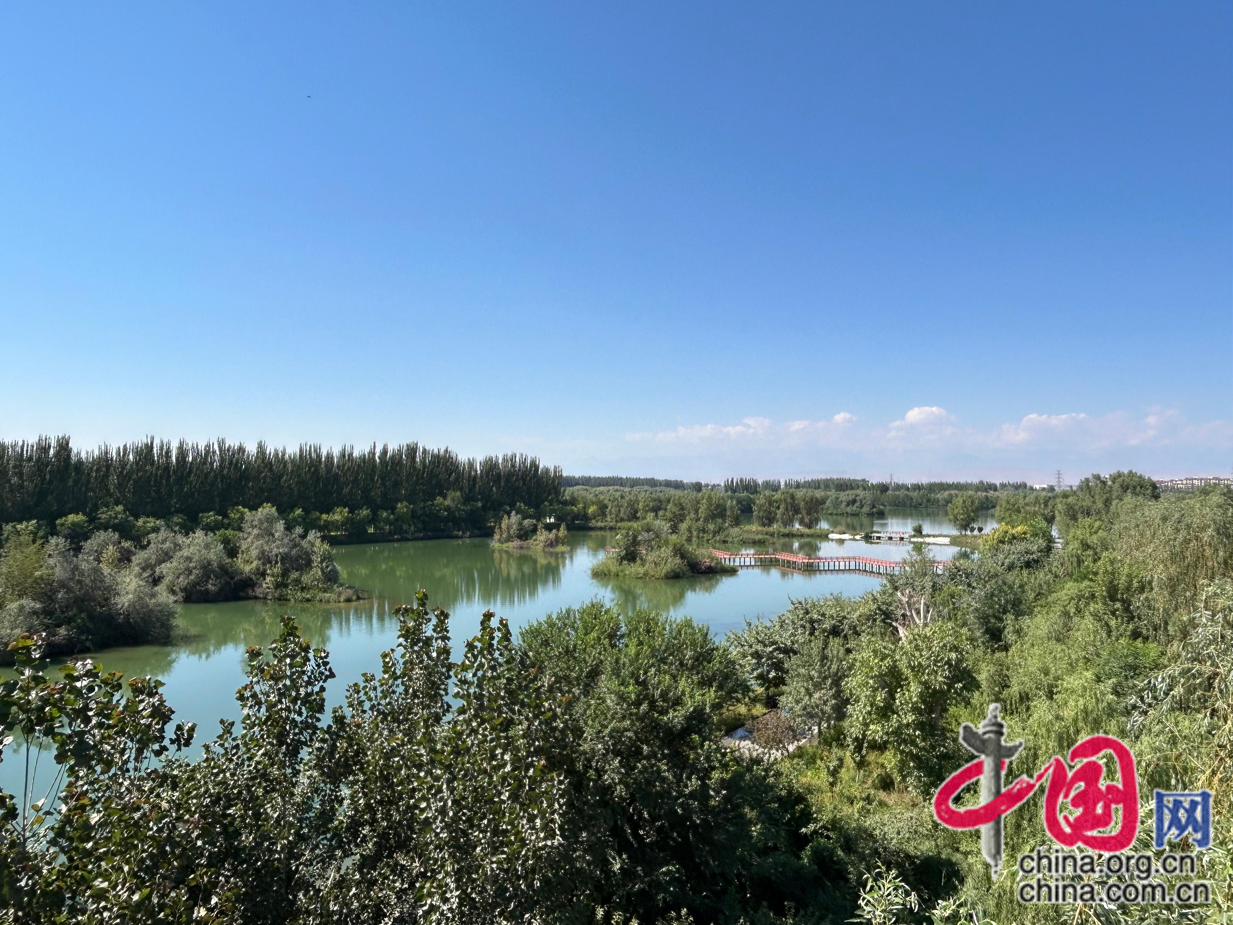 8月9日,从阿克苏国家湿地公园观景台俯瞰公园。中国网记者 吴亮 摄